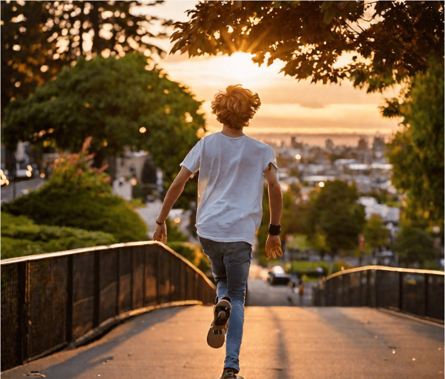 “Got it. Let’s go.” He picked up the board and ran to the parking lot where the concrete was level. You could tell Sawyer watched a lot of boarding videos. Instead of stopping, setting the board down, standing on the board and pushing off with one foot, like any sane beginner would do, he dropped the board to the cement and tried a rolling mount jumping right onto the moving board. AND HE DID IT!