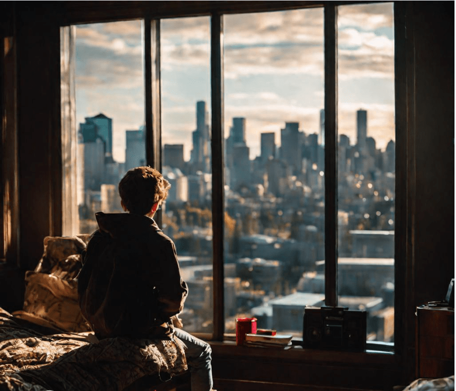 We sat there in silence for a minute, he sprawled on the bed making himself comfortable. No boundaries with this kid. Me crashing on a pile of pillows on the floor.