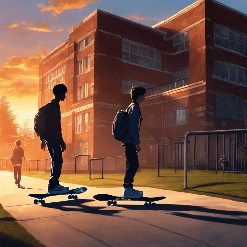 The next Tuesday, the day of the next scout meeting, Sawyer and I skated over to the school early. I was excited, nervous and scared all at the same time. This was the first meeting Burnside was going to attend. For the past few days since he said yes, he was texting my mom and saying he had everything he needed to get signed up as our leader. He said he would meet us at the school before the meeting. I was hoping this was a turning point. Can Burnside get finally Kyle off my back? Can I start enjoying scouts now? If Burnside can give me just a little bit of help, I can start focusing on my merit badges, ranking up and getting one step closer to Eagle Scout. I think that will make my dad proud. It is hard to describe the relief Burnside gave me when he said he would help me and the troop. Because God knows none of the other adults in this crappy clique troop would not. For them it is all about forcing their kids to build a resume to get that college application complete. I may be wrong, but I just don’t buy into that crap. Why can’t it just be fun and enjoy the moment?