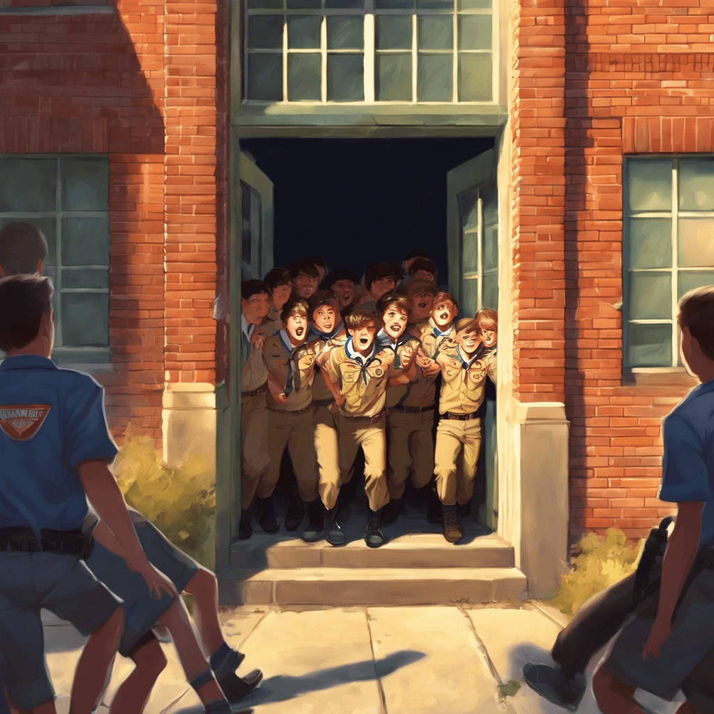 When we reached the school parking lot, we decided to wait outside. We learned the hard way that if we went in early, either Kyle, one of his goons, or some parent would at once start yelling at us. They would start assigning some lame task like polishing and cleaning mess kits or lanterns that have already been cleaned 100 times before.