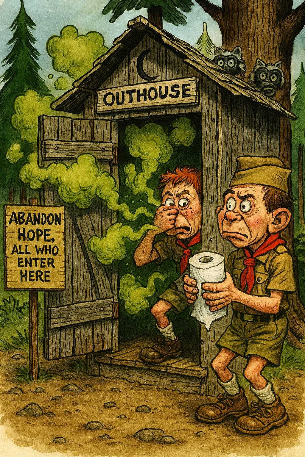 Forget the Eagle badge, real Scouts earn their stripes here. Surviving the summer camp outhouse is the true rite of passage.